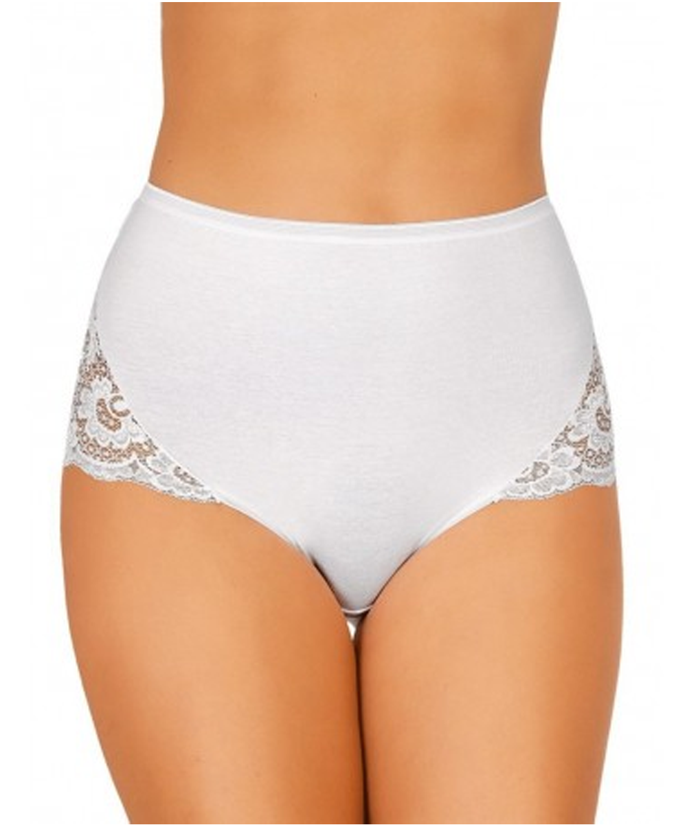 Modello 07 a vita alta, realizzati in morbido cotone elasticizzato con inserti laterali di raffinato pizzo lavorato a motivo floreale.