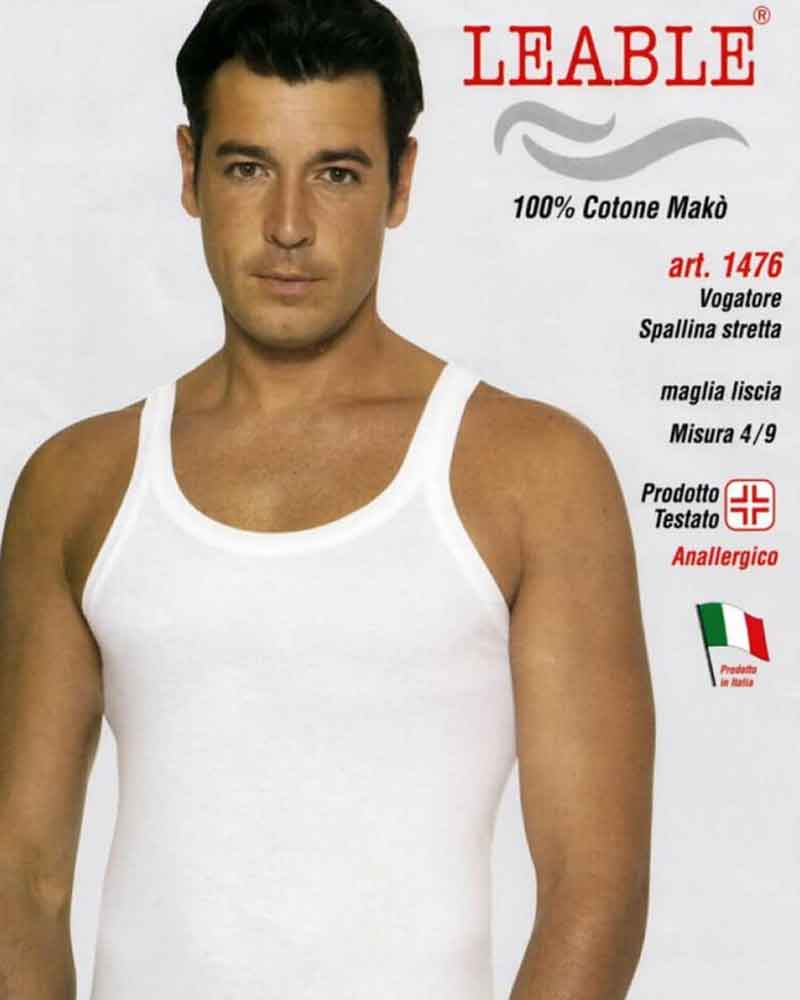 Canotta uomo spallina stretta 1476, realizzato in puro cotone mako' e lavorato a costina 1/1 maglia LISCIA. Prodotto testato anallergico made in Italy.