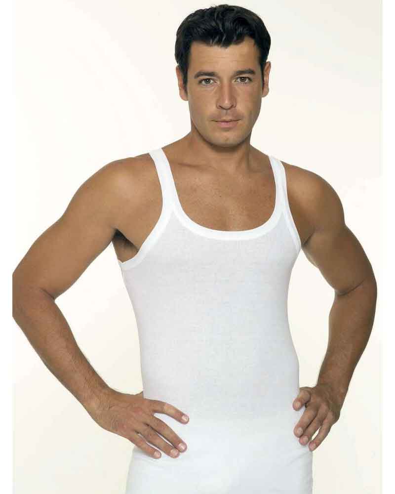 Canotta uomo spallina stretta 1480, realizzato in puro cotone mako' e lavorato a costina 2/1 RIGATA. Prodotto testato anallergico made in Italy.