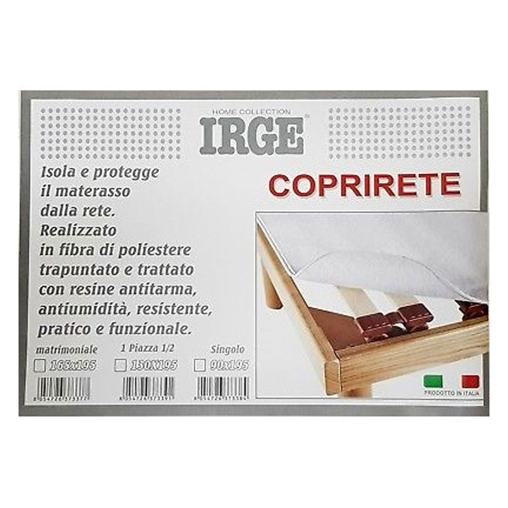 Realizzato in fibra di poliestere trapuntato e trattato con resine anti tarma, anti umidità, resistente, pratico e funzionale. Fissaggio alla rete con laccetti.