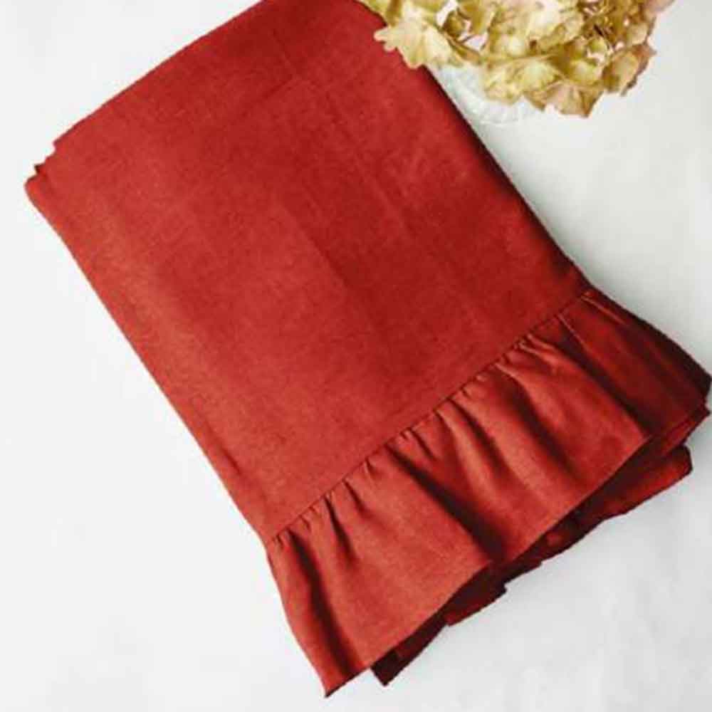 La Tovaglia Giordana è arricchito da una romantica rouches, interamente in tinta unita e realizzata in misto lino.