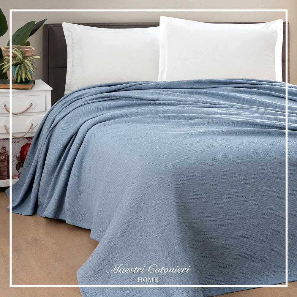 Il Copriletto ZigZag è realizzato in tessuto cotone con effetto goffrato. Materia prima certificata e trattata con tecnologia antimicrobica che elimina i batteri nocivi.