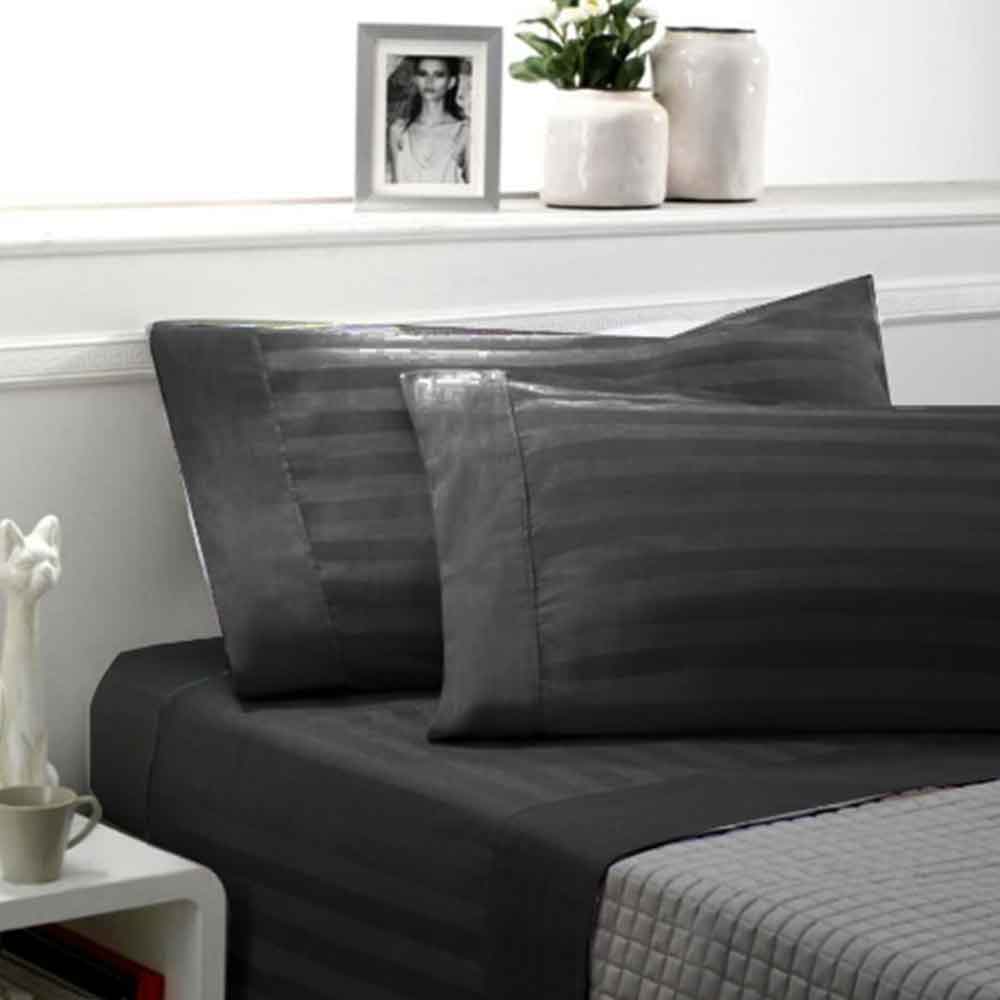 Il completo lenzuola Zefiro è confezionato con tessuto in raso di puro cotone pettinato tessuto a riga con effetto lucido-opaco. Morbido e setoso al tatto, il lenzuolo Zefiro è composto da 1 lenzuolo da sopra, 1 lenzuolo da sotto con angoli elasticizzati e due federe. La parure lenzuola di raso è disponibile in diverse varianti di colore nella misura per letto matrimoniale.