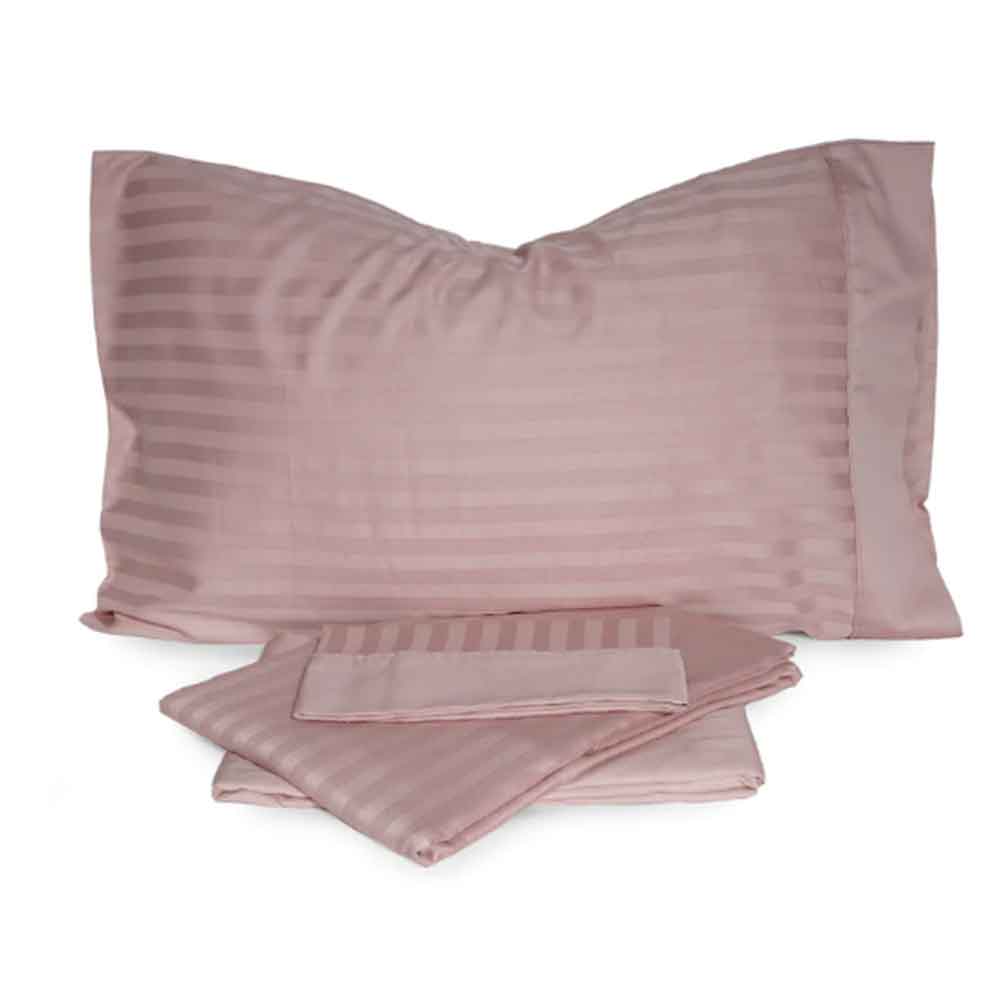 Il completo lenzuola Zefiro è confezionato con tessuto in raso di puro cotone pettinato tessuto a riga con effetto lucido-opaco. Morbido e setoso al tatto, il lenzuolo Zefiro è composto da 1 lenzuolo da sopra, 1 lenzuolo da sotto con angoli elasticizzati e due federe. La parure lenzuola di raso è disponibile in diverse varianti di colore nella misura per letto matrimoniale.