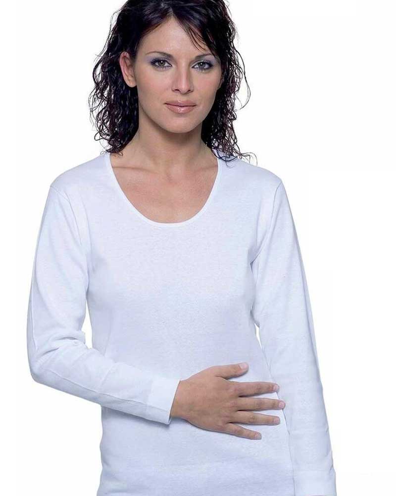 T-shirt donna a manica lunga di Leable 260 in cotone interlock felpato, con bordo in raso.
